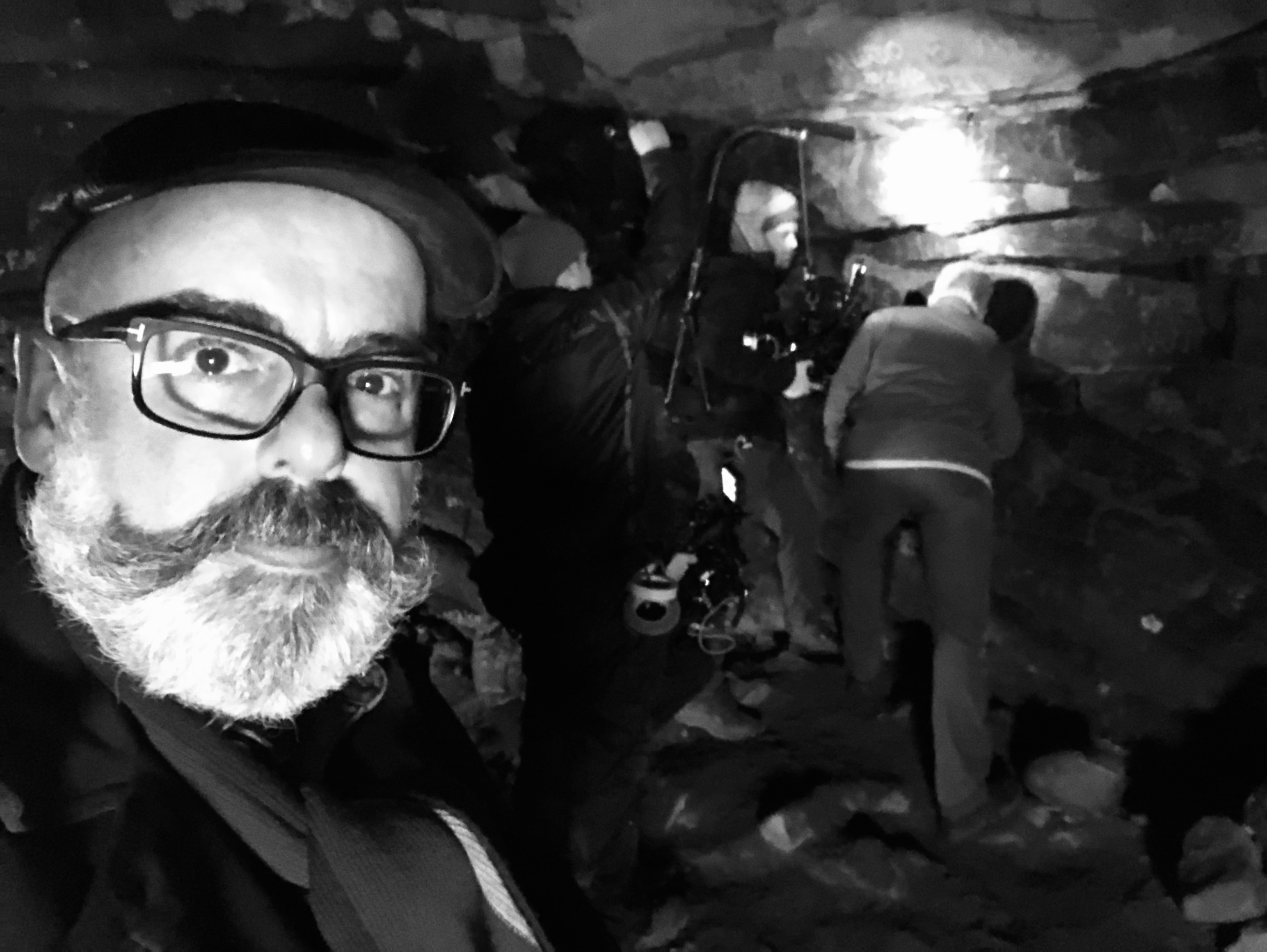 We spent a weekend doing some historical detective work around Rosslyn chapel and then Wemyss Caves – a dangerous subterranean world up the coast. To find what we were seeking there, I had to make a very undignified entrance into the bowel of the cave by very literally crawling on my belly. But it was worth it!